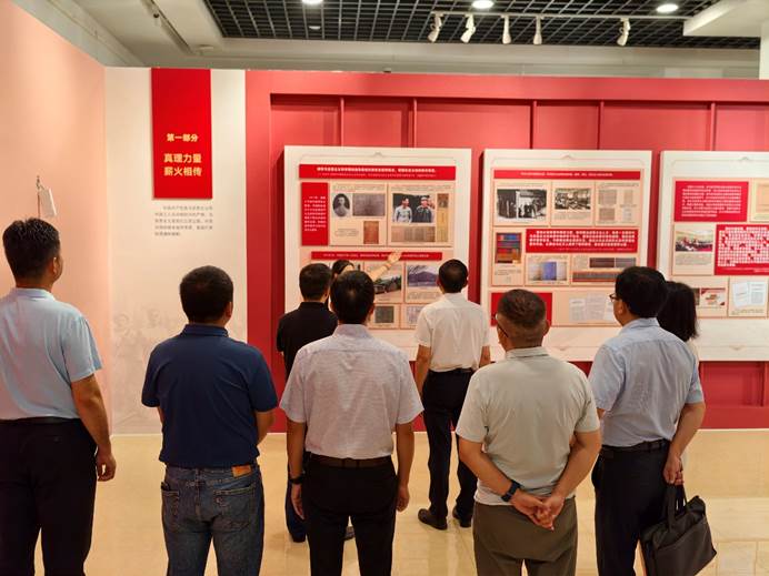 参观过程中,大家不时驻足仔细观看,交流讨论思想感悟。一件件承载着历史与思想的珍贵展品,仿佛将大家带回了那个波澜壮阔的思想启蒙与革命实践年代,使同志们对马克思主义基本原理同中国具体实际相结合、同中华优秀传统文化相结合的历史必然性与科学性有了更直观和深刻的认识。