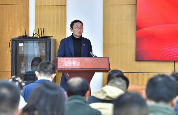 大会在庄严的国歌声中拉开帷幕。科发院党委书记黄斌作题为《勠力同心,勇于担当 为科技支撑一流高校建设贡献智慧力量》的工作报告。报告紧密围绕大会主题,全面总结院党委成立以来的主要工作,深入分析当前发展面临的形势任务,科学谋划未来五年的发展目标和重点任务。报告强调,坚持和加强党的全面领导是做好一切工作的根本保证。必须始终把党的政治建设摆在首位,持续深化理论武装,巩固拓展作风建设成果,压紧压实全面从严治党主体责任,不断提升党建工作质量,以高质量党建引领科技事业高质量发展。