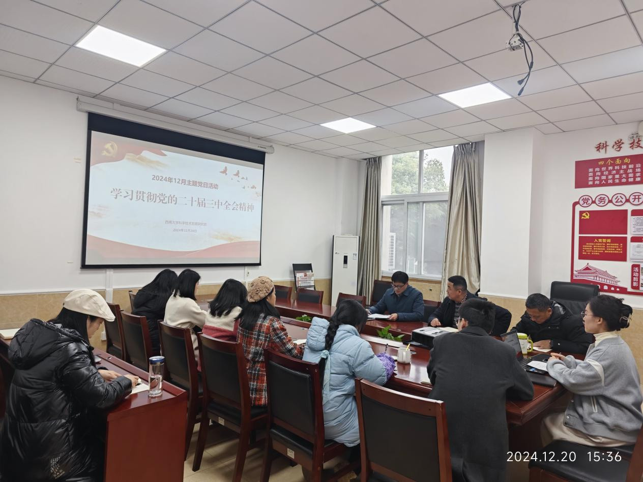 按照机关党委的工作安排,结合本支部工作实际,党支部于12月20日下午在南区行政楼A109会议室开展主题为“学习贯彻党的二十届三中全会精神”的主题党日活动。此次活动由党支部书记段有德同志主持,成果管理办公室导学。