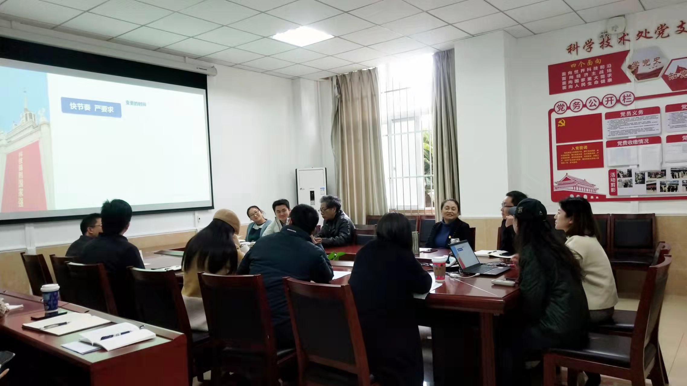 11月12日下午,按照学校部署要求,科技处党支部在南区行政楼104会议室集中围绕“学党章学条例 抓规范抓落实”开展主题党日活动。活动由支部书记黄斌同志主持。