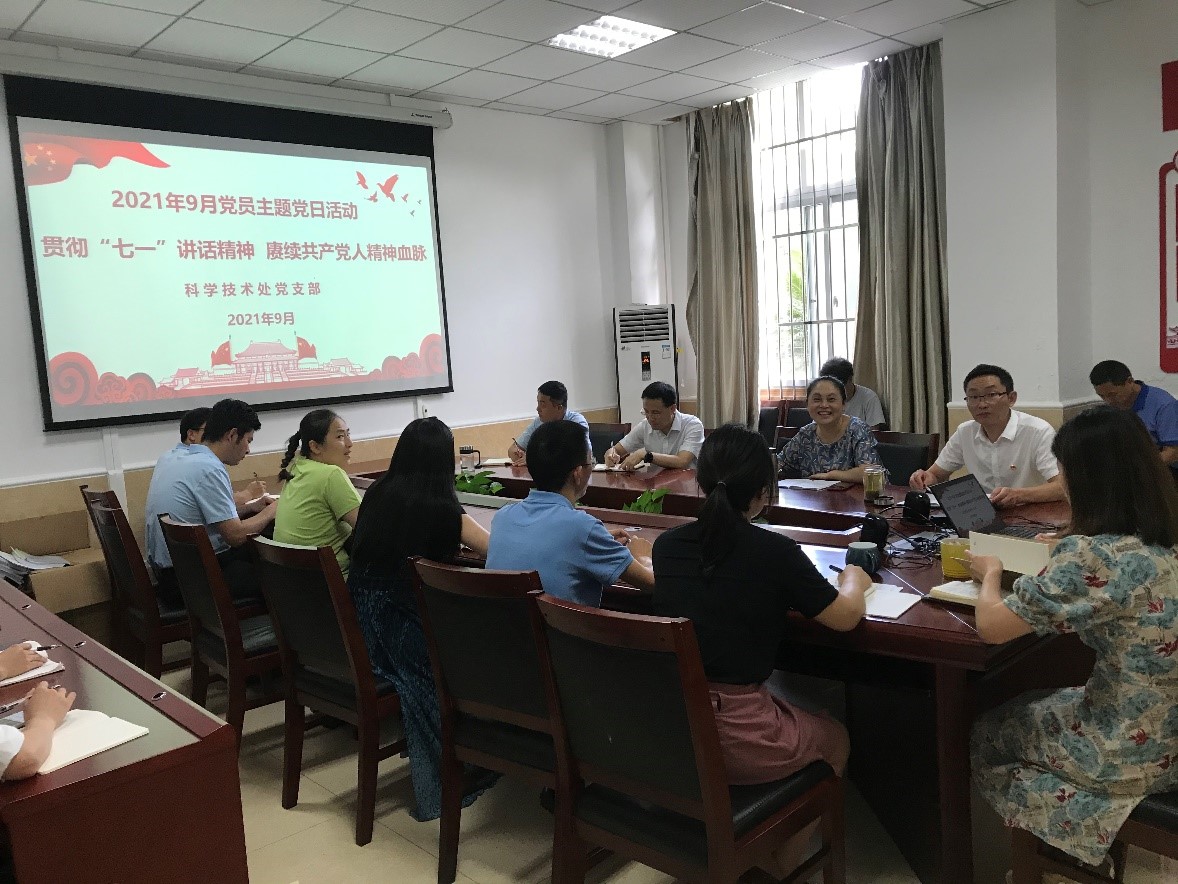 9月10日下午,科技处党支部在104会议室开展主题为“学习贯彻‘七一’讲话精神 赓续共产党人精神血脉”的党日活动。活动由支部书记黄斌主持。