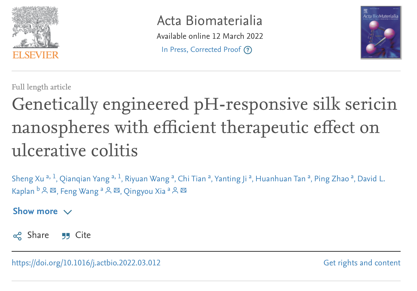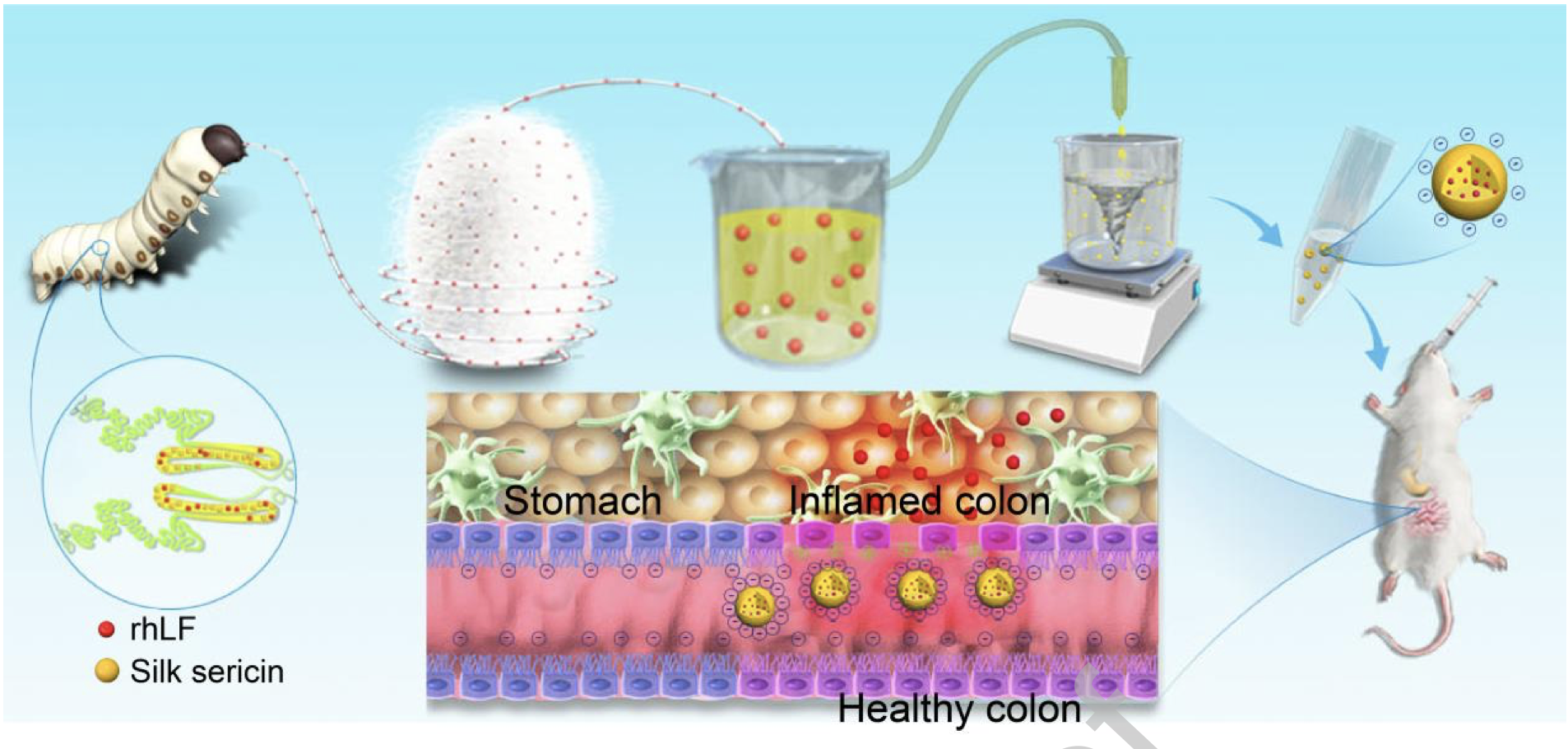 近日,betway88西汉姆网页前沿交叉学科研究院生物学研究中心夏庆友教授团队与美国塔夫茨大学David L.Kaplan院士合作,在Acta Biomaterialia在线发表了题为“Genetically engineered pH-responsive silk sericin nanospheres with efficient therapeutic effect on ulcerative colitis”的研究论文,报道了团队在家蚕种质创制素材的创新应用方向取得的最新进展。