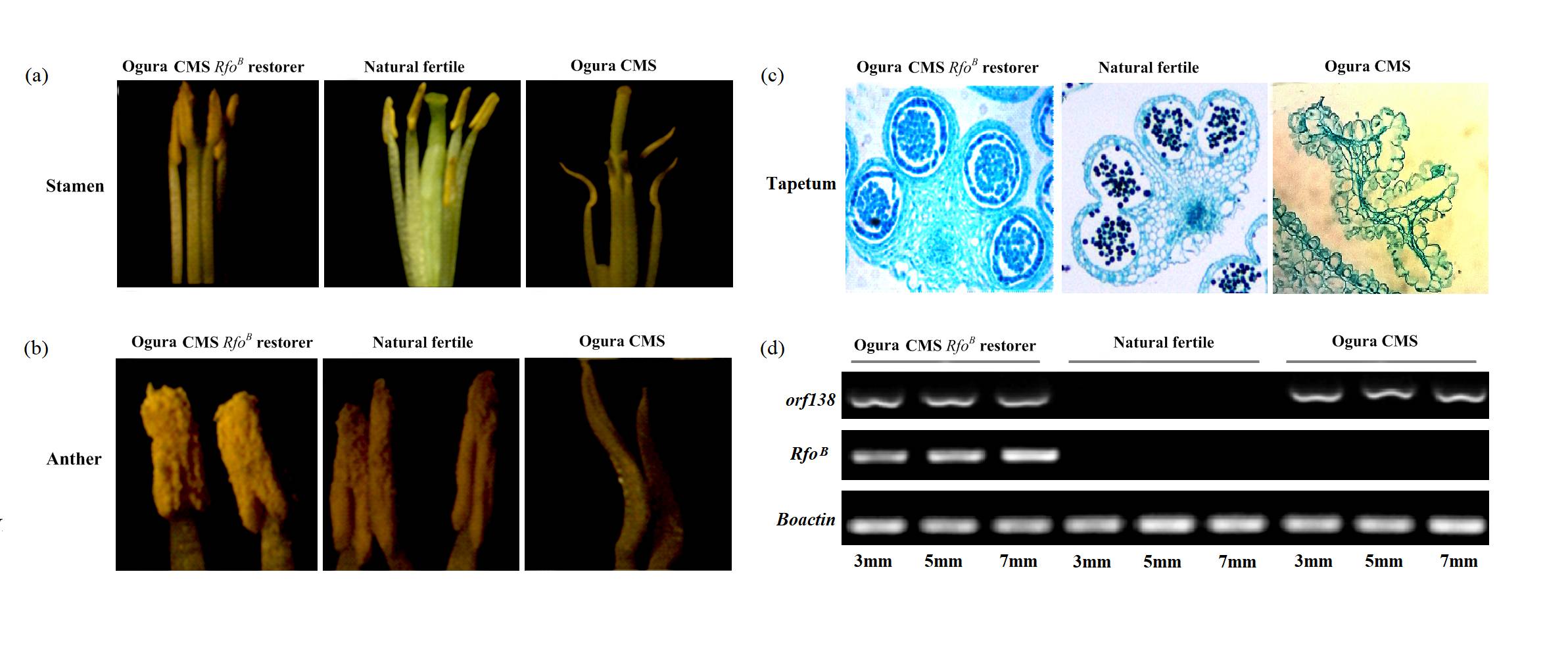 据悉,甘蓝类蔬菜包含结球甘蓝、花椰菜、青花菜、苤蓝、孢子甘蓝和芥蓝等不同变种,表型差异十分丰富。目前,Ogura CMS不育系已经成为甘蓝类蔬菜杂种优势利用最普遍的育种途径。Ogura CMS细胞质雄性不育基因位于细胞质内,位于不育材料(品种)中的优异性状无法被分离出来与其他优异性状进行组合而被再利用,形成优异种质资源再利用的技术封锁,阻碍甘蓝类蔬菜优异育种材料的创新。为了突破Ogura CMS不育系的技术封锁,研究所将来自萝卜的RfoB恢复基因优化后转入结球甘蓝中,创制了结球甘蓝Ogura CMS恢复系,将该恢复系与不同类型的甘蓝类蔬菜杂交和回交创制了一系列(18种类型)甘蓝类蔬菜Ogura CMS专用恢复系,并利用该恢复系成功转出Ogura CMS品种GZ87的根肿病抗性。