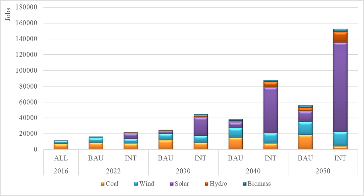 图2 2016-2050年常规情景和综合情景下的就业容量