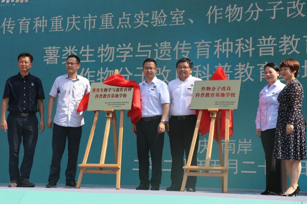 在与会人员共同见证下,betway88西汉姆网页农学与生物科技学院院长吕典秋与重庆市南岸区龙门浩隆平小学校校长董宏燕代表双方单位签订合作协议。betway88西汉姆网页农学与生物科技学院党委书记阳义健、院长吕典秋、副院长曲存民分别为智慧农业驻点指导基地学校”“大学生社会实践基地学校”“薯类生物学与遗传育种科普教育基地学校作物分子改良科普教育基地学校揭牌。