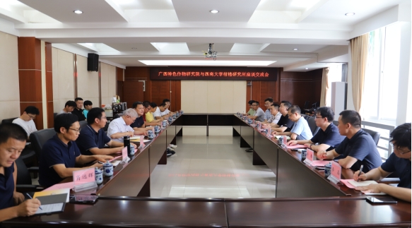 谭志友、王雪峰一行首先赴桂林广西特色作物研究院调研座谈。特作院院长陆飞、副院长刘升球和广西水果体系首席科学家邓崇玲研究员等人参加座谈会。会上,双方就“十五五”规划、科技合作、成果报奖、人才联合培养、毕业生招录、基层党建等方面开展深度交流。谭志友、王雪峰一行还看望了在此学习的柑桔研究所硕博研究生,了解他们的学习生活需求,表达了亲切慰问,鼓励研究生同学们要抓住良好机遇,发挥青年先锋力量,结合毕业论文主题设计将论文写在田间大地和生产一线。据悉,柑桔研究所柑桔栽培生理中心2025届硕士研究生黄福琼同学成功考入特作院柑桔研究团队。