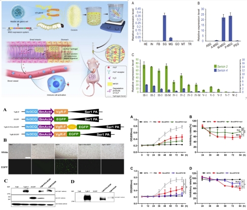 蚕丝在推动中华文明的发展中做出了重要的历史贡献。近几十年来,蚕丝在医用生物材料领域开拓出了一片崭新的天地,但是其优异特性的分子机理却没有被系统地研究,严重制约了该领域的发展。本项目基于蚕丝独有的抗菌表现,提出蚕丝中具有天然抗菌成分这一猜想,通过十余年的努力从蚕丝中发现了几十种抗菌蛋白的存在,系统阐明了蚕丝抗菌的分子机理,成为国际上蚕丝抗菌研究的开创者与领跑者。以此为基础,创制了多种具有抗菌抗炎活性的新型蚕丝纤维素材;开发了多款功能性的蚕丝膜和水凝胶材料,评价了其在促伤口愈合和免疫器官修复等方面的功效和应用潜力,在抗菌蚕丝材料的研究与应用方面走在了国际最前沿。