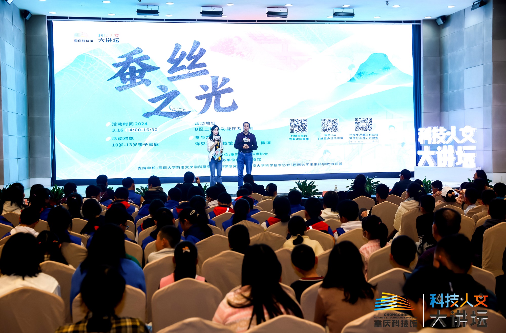 3月16日,由重庆科技馆主办,betway88西汉姆网页前沿交叉学科研究院生物学研究中心、betway88西汉姆网页科学技术协会、betway88西汉姆网页未来科学教师联盟协办的“蚕丝之光”科技·人文大讲坛主题活动在重庆科技馆举行。