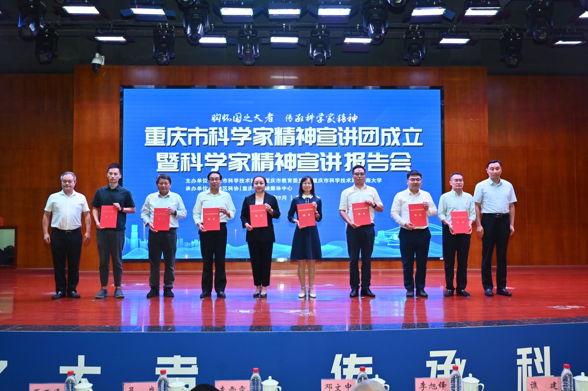 会议现场举行了重庆市科学家精神宣讲团成立仪式,并为第一批宣讲团成员颁发聘书。“科学成就离不开精神支撑,科学家精神始终指引着我们前进的方向。”中国工程院外籍院士邓文中在现场寄语科技工作者,希望大家在学习和工作中大力弘扬科学家精神,以高超技能为国家和社会作出贡献。