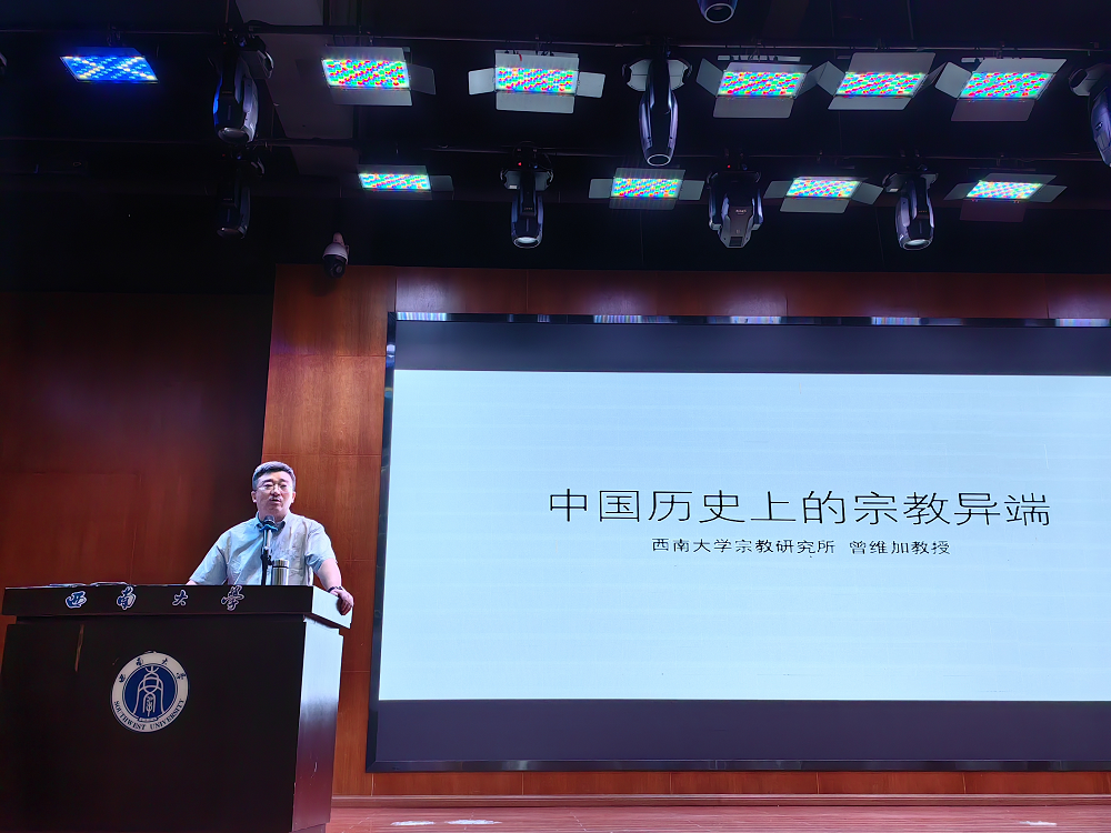 活动开始前,循环播放了北碚区委政法委出品,学校拍摄的反邪教视频《阳光照进隐秘的角落-远离邪教 共建平安》。宣讲会上,曾维加以“中国历史上的宗教异端”为题,围绕习总书记对宗教和宗教极端主义以及邪教的重要论述、宗教异端名称的演化、中国历史上的宗教异端、宗教异端的特征四个方面进行了宣讲。引经据典,生动形象地阐释了宗教异端最突出的本质特征就是反社会性,详述了中国历史上宗教异端的主要特征以及带来的严重危害。