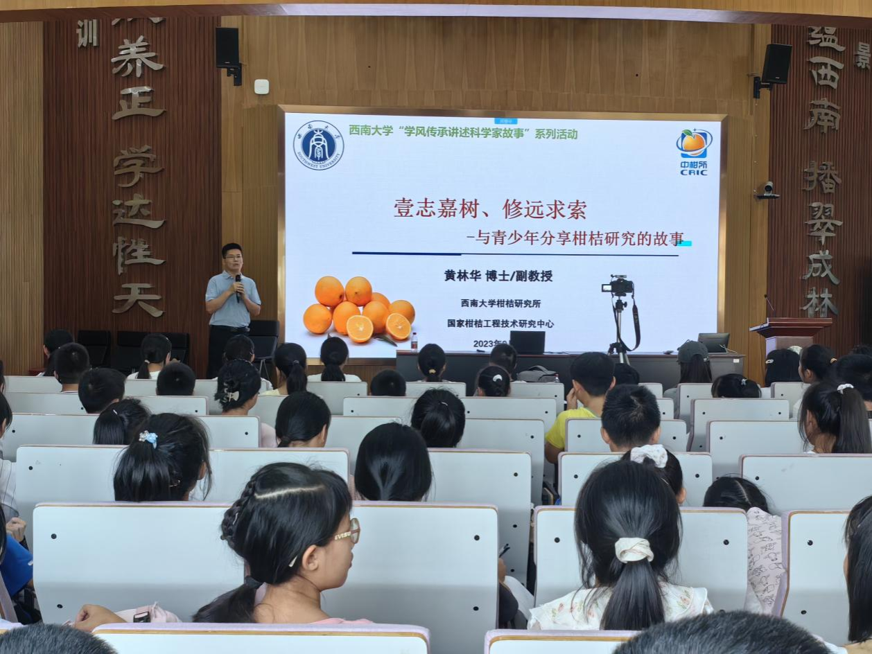 按照教育部、中国科协联合印发《“科学家(精神)进校园行动”实施方案》要求,学校科学技术处(科协)组织实施科学家(精神)进校园行动。2023年9月7日下午,学校科协组织柑桔研究所黄林华副教授进betway88西汉姆网页附属小学作《壹志嘉树、修远求索-与青少年分享柑桔研究的故事》宣讲,北碚区科协、学校科协、柑桔研究所科技服务志愿者及betway88西汉姆网页附属小学6年级学生100余人参加了宣讲活动。