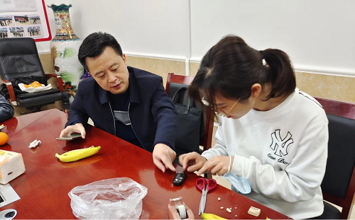 结束完志愿者任务的午后,处领导拿出汽车遥控钥匙感慨经过十年的反复使用已“风烛残年”,锁车按键按压处的外壳也已不知去向。“三个臭皮匠顶个诸葛亮”,大家在调侃“不换钥匙直接换车”之余,纷纷支招如何进行抢救性修护遥控钥匙,在一众“腹黑”小伙伴的怂恿下,陈晨老师决定上手用高分子材料---橡皮擦对缺失的按键外壳部分进行填充修补。简要步骤如下:先对照残缺处的形状,从大橡皮擦切出相应的颗粒,再把颗粒填充到残缺处、以马克笔将橡皮颗粒涂黑并辅以透明胶带缠绕加固,一件纯手工的遥控钥匙修复品得以完工,虽然按压手感远不如原装成品,但经现场验收测试基本恢复锁车性能。“需要充值付费才能解锁享受VIP中P的服务”,小伙伴们又是一阵善意轻松的调侃。劳作之后的笑声,给大家除去了许多疲惫。感谢科技处友爱团结的集体,“没有不值得做的小事情,没有解决不了的大问题”,在时艰困难中让大家心中感觉温暖而坚强。