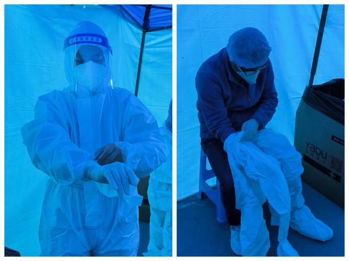 虽然我们和驻守“四运”核酸检测点的医护人员已经是老熟人了,穿脱防护服对我们而言更是熟练工,但每一次,这些核酸点的医务人员都会不厌其烦地反复叮嘱我们,强调按照操作规程严格规范每一个步骤的重要性。我们信息录入员,作为内场工作人员更要加强防护,防护用具的使用保证严格规范,这不仅是对我们志愿者自身安全的保护,更是确保所有师生绝对安全的关键步骤。