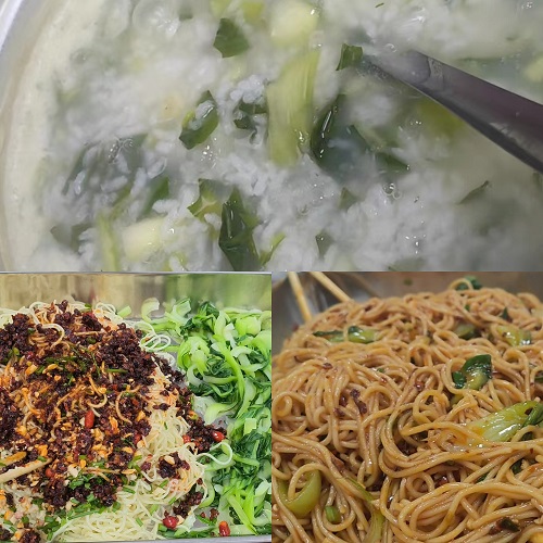 今天的晚餐,大家动手准备了青菜粥和凉拌面,清淡而爽口被小伙伴们一扫而光,可谓是简约而不简单的美食典范。大厨周老师也被赠予“司务长”美誉。