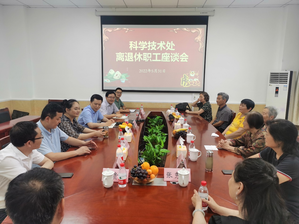 在传统节日端午节来临之际,5月31日下午,科学技术处召开离退休职工座谈会,诚邀离退休职工返回原工作单位指导交流工作,85岁高龄的宋淇老师主动要求参加活动。在全体处领导的陪同下,8位退休职工参观了科技处、科协办公室,与在职职工见面热烈交流,并在会议室举行了座谈会,座谈会由李雪梅副处长主持。