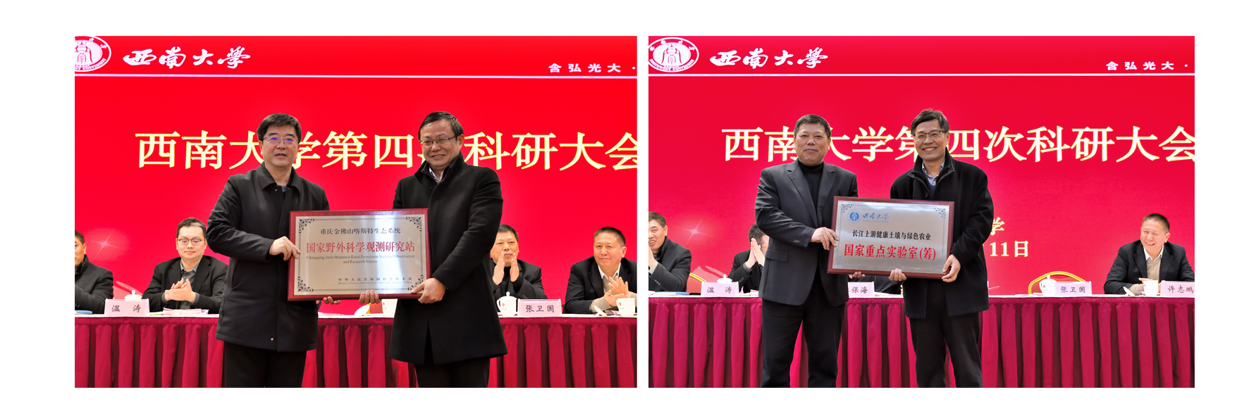 会上,举行了“十三五”期间新建的金佛山喀斯特生态系统国家野外科学观测研究站和长江上游健康土壤与绿色农业发展国家重点实验室(筹)两个科技平台的授牌仪式。