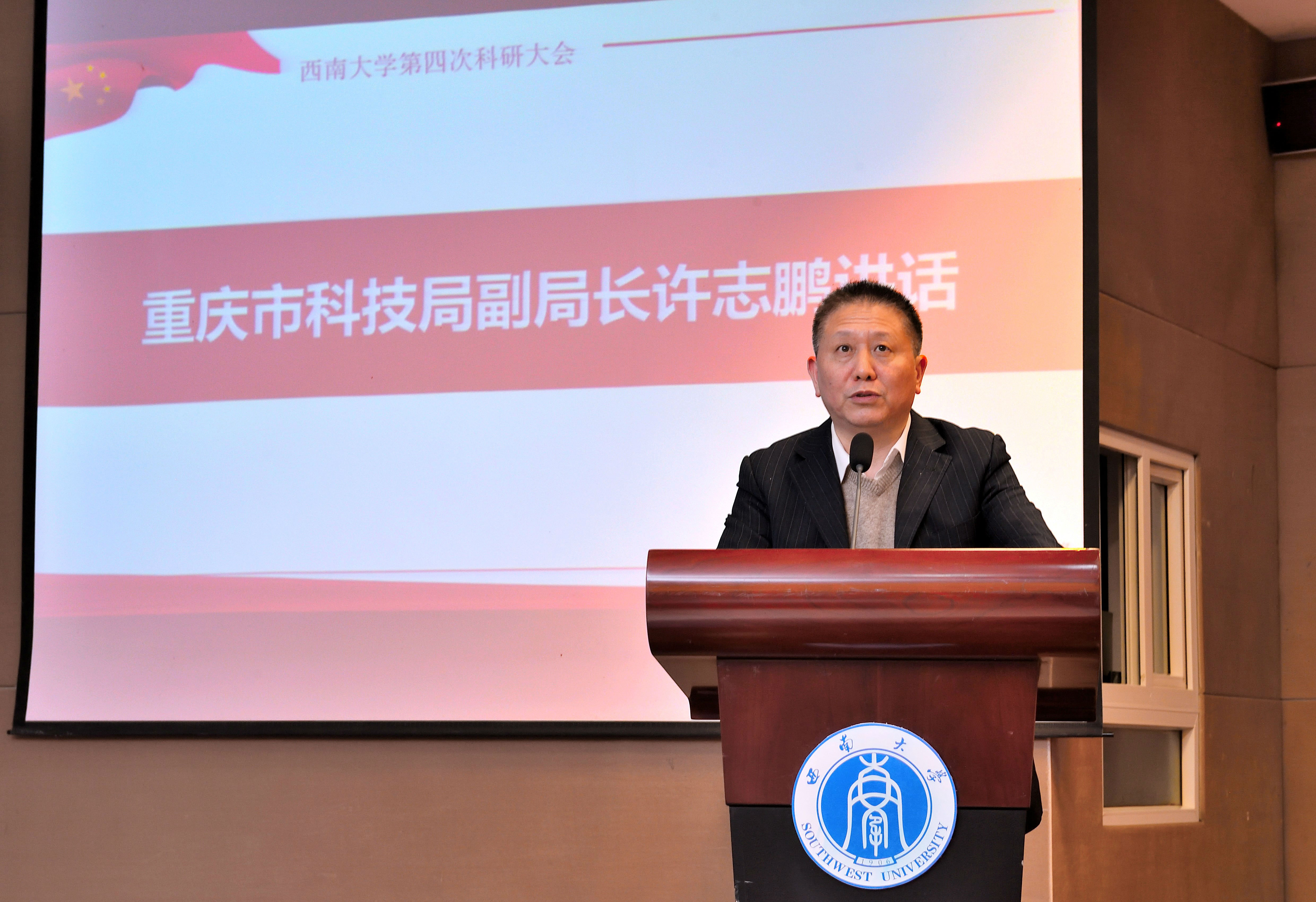 重庆市科学技术局副局长许志鹏会上充分肯定学校十三五期间在科研队伍、科研平台、科研成果方面的工作成效,同时他也为学校未来的科研工作提了四点建议:坚持四个面向,主动对接国家战略需求,凝练重大科技任务,找准“着力点”,下好“先手棋”,力争重大项目承担能力再上台阶;抢抓成渝地区双城经济圈和西部科学城建设机遇,整合学校优势资源,加强科研平台建设,争取国家战略科技力量在重庆的布局;贯彻落实国家和重庆市科技创新政策,深化科技体制机制改革,建成新时代科技创新体系;紧密对接国家和重庆地方经济社会发展需求,为国家和区域发展提供科技支撑。