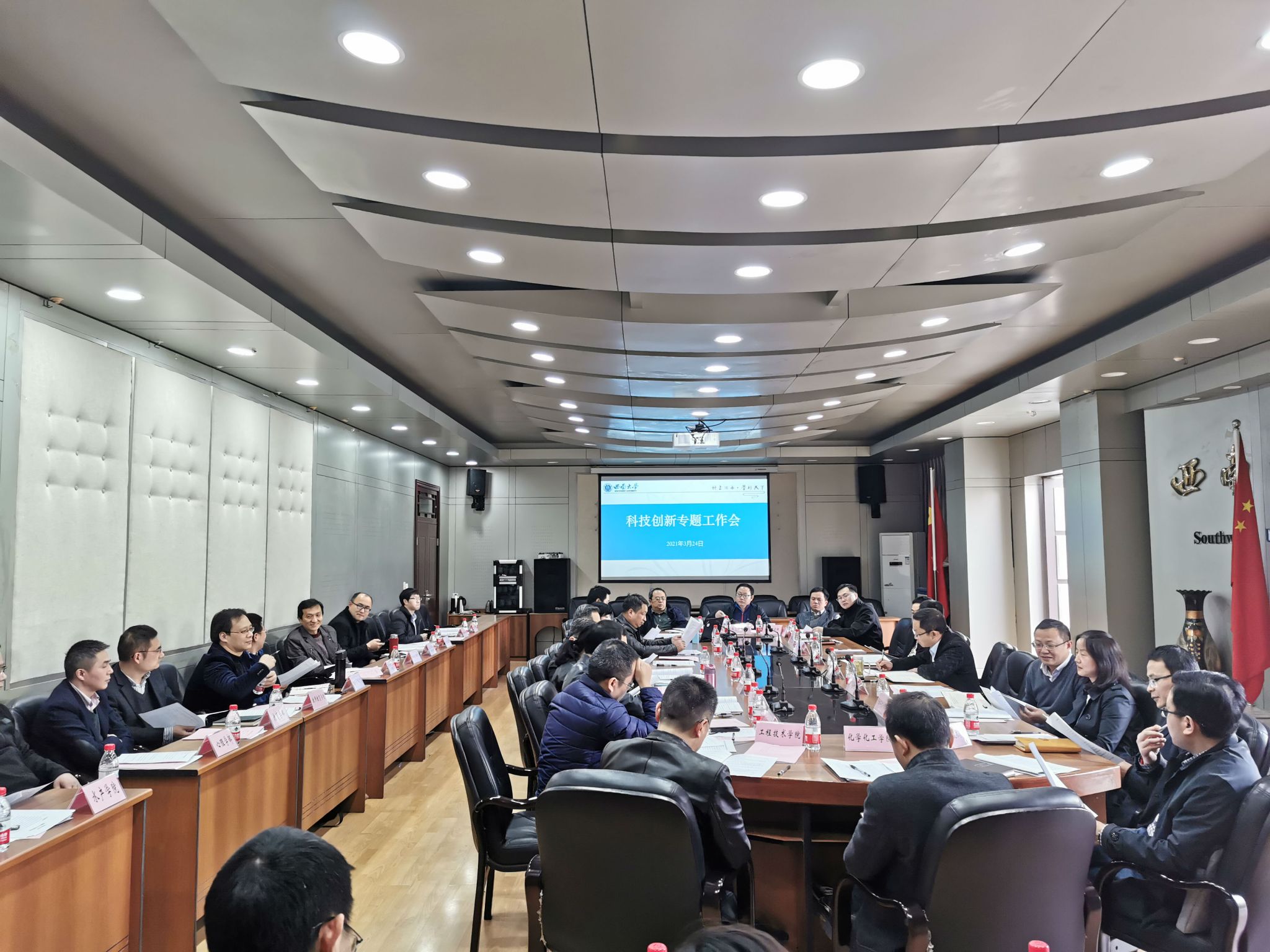 为充分发挥我校学科综合优势,强化基础研究,凝练未来发展方向,引导学科交叉融合,谋划布局学校科技创新重点领域,实施2035创新研究先导计划,学校于3月24日下午在文俊楼311会议室召开了科技创新专题研讨会。学校自然科学类各二级教学科研单位、部分人文社科类二级教学科研单位负责人参加会议,会议由科技处黄斌副处长主持。