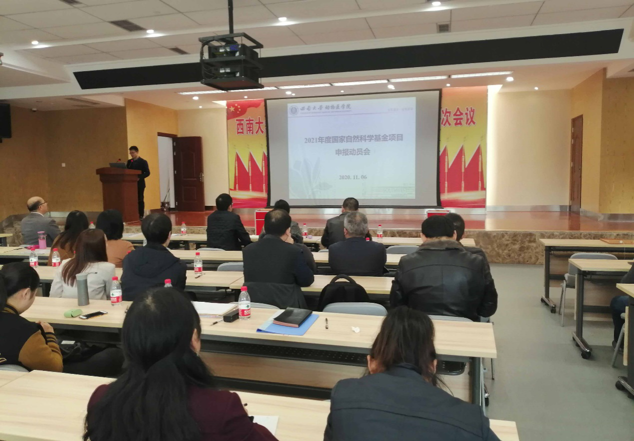 据悉,为切实落实学校关于国家自然科学基金项目申报的相关工作要求,提高学院申报项目的数量和质量,动物医学院11月6日下午在荣昌校区7B101报告厅召开了国家基金申报动员会。学院党委书记黄昌建、院长刘娟、副书记黄庆洲和副院长宋振辉、副院长方仁东出席了此次动员会,学院全体教师参加了动员大会。方仁东做动员报告,通过详实的数据对我院近几年申报和立项等具体情况进行了总结分析,强调了申请国家自然科学基金的重要性,并对2021年度的申报工作进行了动员和布置,希望老师们总结经验,及早谋划。