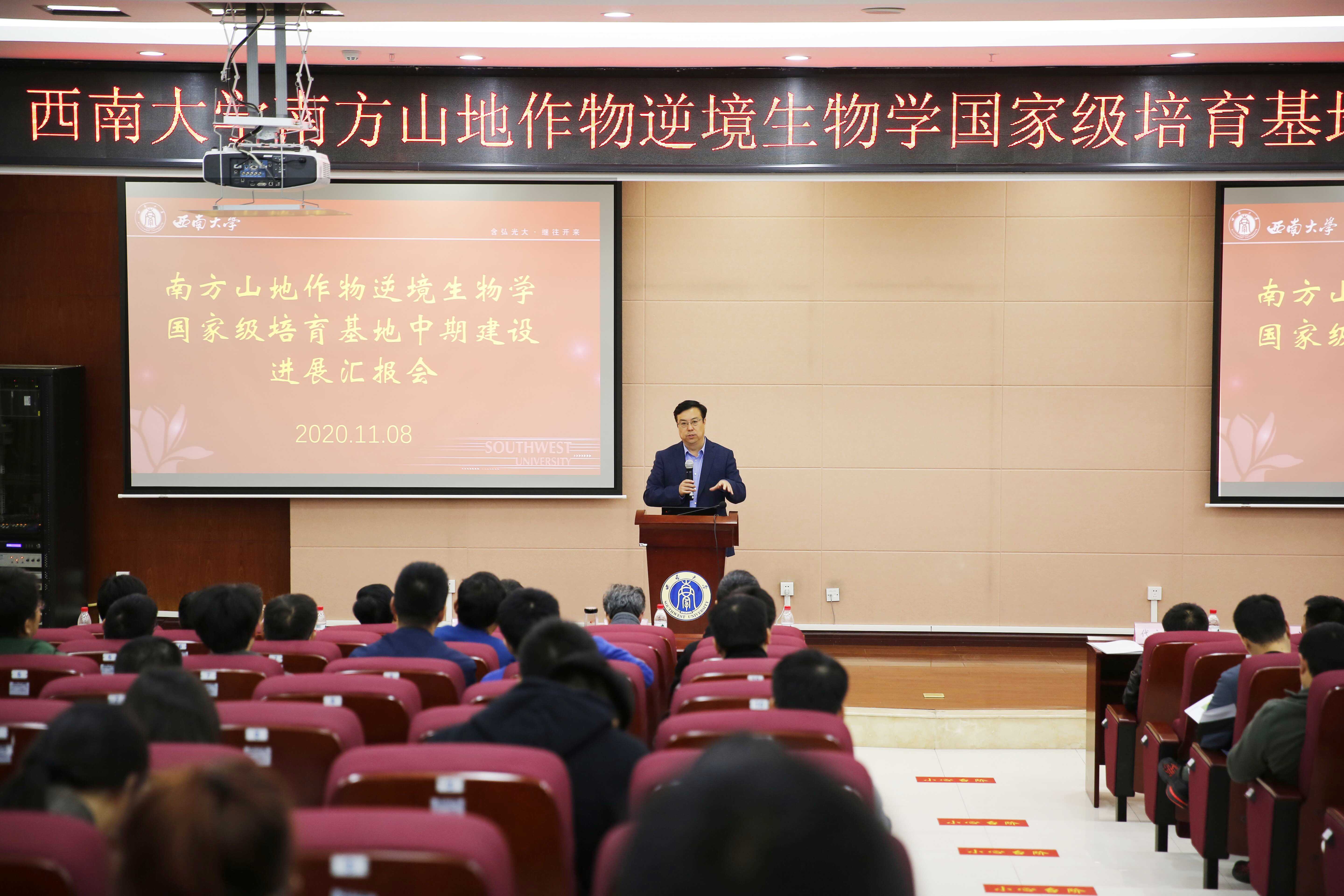 11月8日下午,学校南方山地作物逆境生物学国家级培育基地(以下简称“国培基地”)中期建设进展汇报会在隆平楼204报告厅召开。学校副校长、国培基地主任王进军教授,国培基地常务副主任何林教授、副主任卢坤教授、肖月华研究员及各团队成员和研究生代表近300人参加会议。会议邀请了科学技术处相关负责人,代方银教授、赵永聚教授和罗克明教授担任点评专家。会议由何林和卢坤主持。