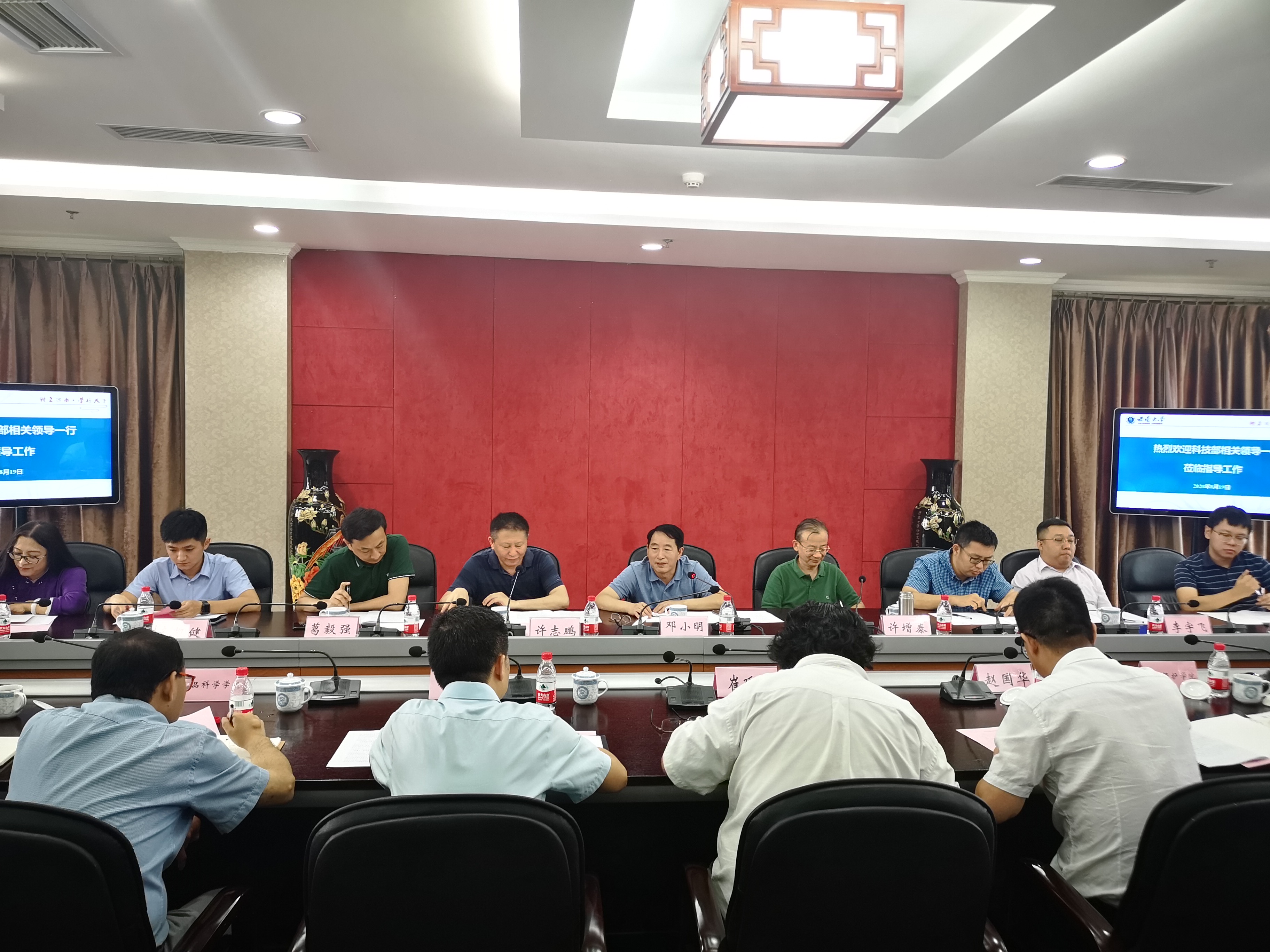 2020年8月19日,科技部中国农村技术开发中心主任邓小明、农村科技司巡视员许增泰、重庆市科技局副局长许志鹏等一行莅临学校指导工作。学校副校长崔延强、赵国华陪同调研,学校党政办公室、科学技术处及涉农的相关学院参加活动。