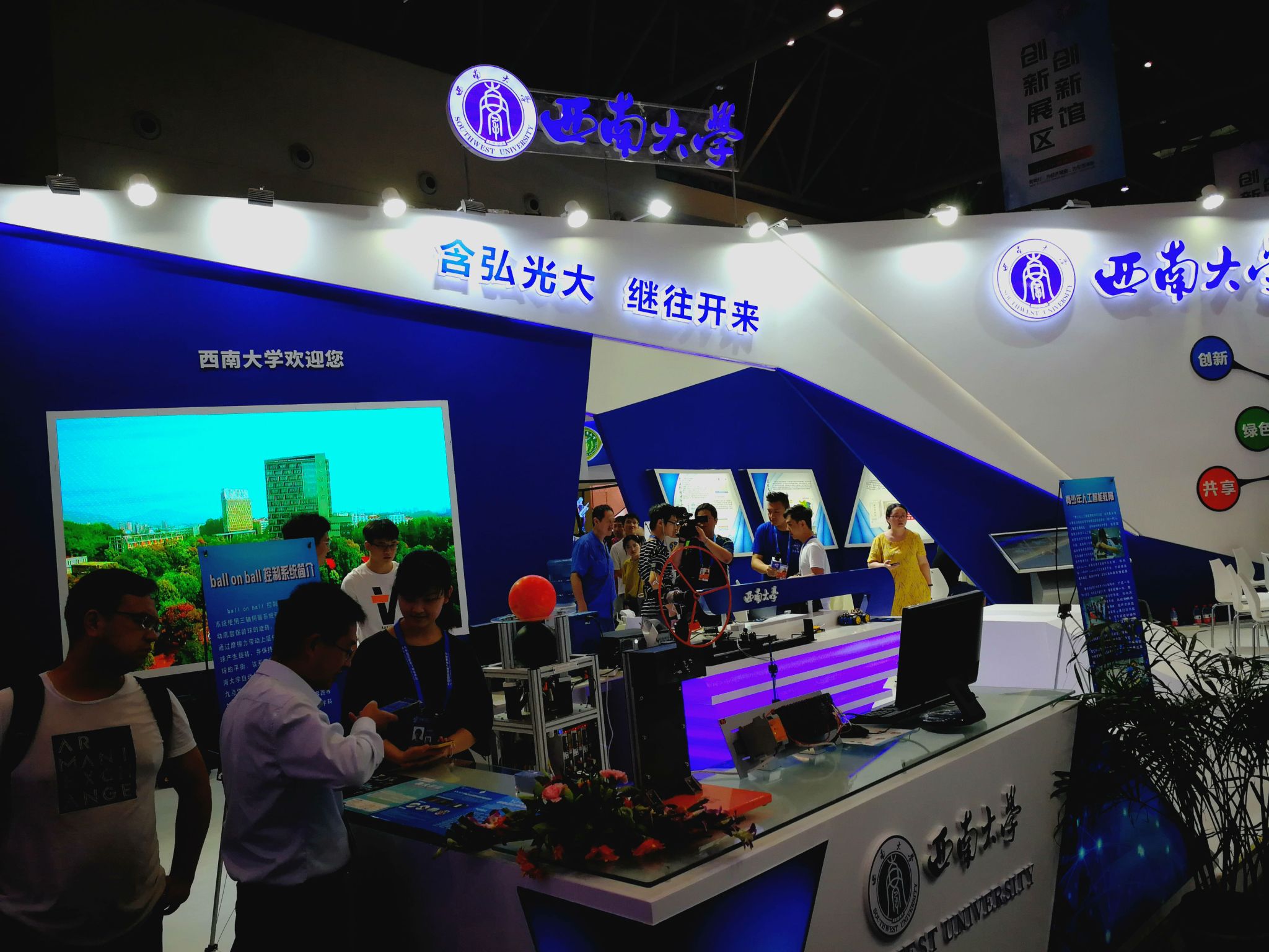 本次智博会由张卫国校长带队,科学技术处组织,相关学院成果负责人和研究人员参与,经过成果展示、宣传、对接洽谈,智博会硕果累累。展会期间,相关各级领导亲临我校展台进行工作指导,包括重庆市副市长吴存荣一行;市科委主任许洪斌、副书记徐青一行;北碚区区委书记周旭、区长何庆一行等。领导们亲切慰问我校科研人员,鼓励我校以教育和农业为基础,积极推动智能相关产业科学研究,并饶有兴趣的听取了部分项目科研人员的介绍和现场展示。同时,betway88西汉姆网页展台也引起了广大市民的热切关注,广泛参与“ball on ball 控制系统”、“青少年人工智能教育”、“八轮足机器人(底盘)”等互动项目,智博会期间参观人数超万人。