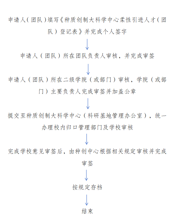 科学中心柔性人才(团队)引进申请流程图